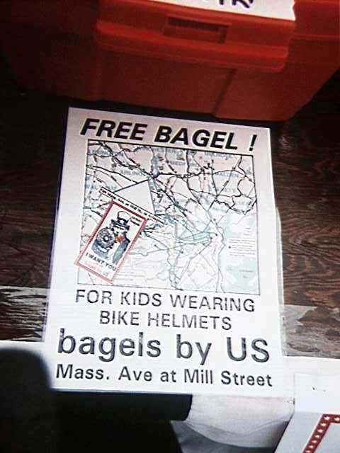 Free bagels and cream cheese were provided by a different vendor each morning.