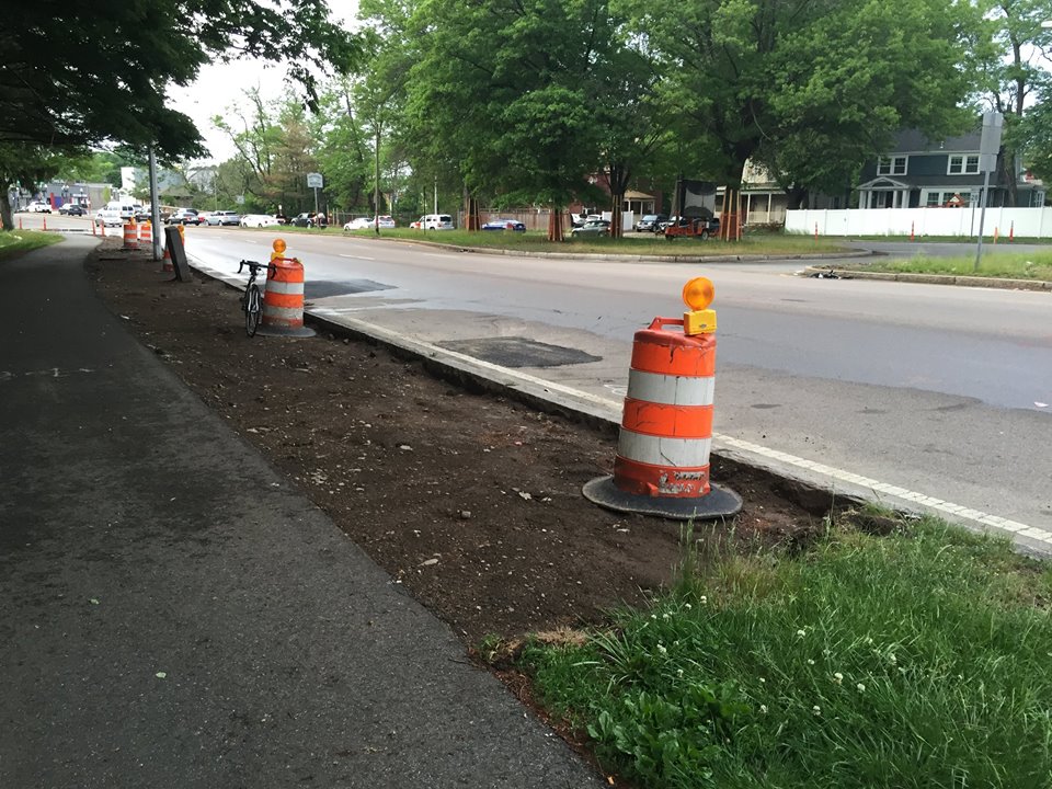 Construction has begun on a trail crossing of Blue Hill Parkway just south of Mattapan Square.